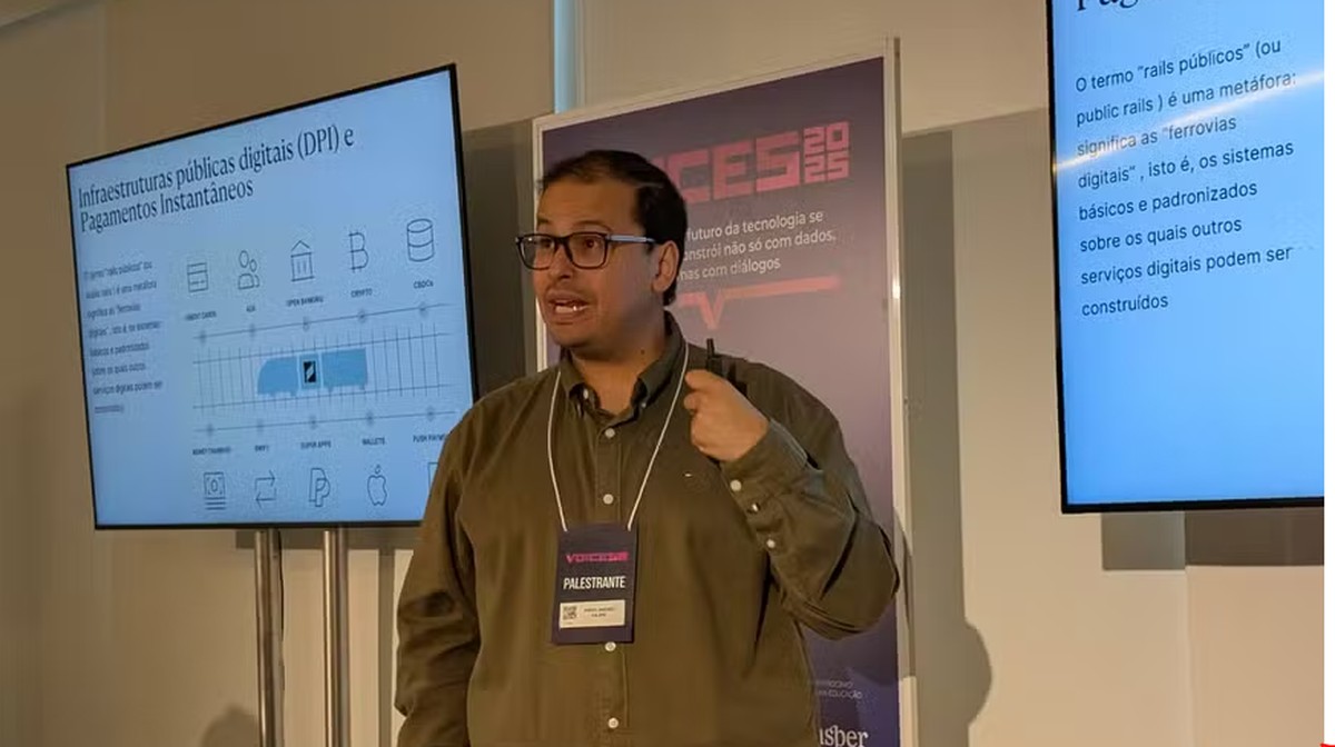 A apresentação também destacou o protagonismo brasileiro nas infraestruturas públicas digitais, especialmente os trilhos criados pelo Banco Central com o Pix e suas extensões programáveis. Nesse ambiente, já surge a possibilidade de transações realizadas entre agentes de IA. “É agente com agente”, explicou.